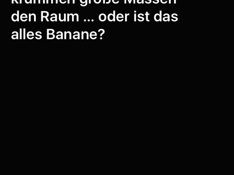Frage: „Warum ist die Banane krumm?“ Antwort: „Laut Albert Einstein krümmen große Massen den Raum... oder ist das alles Banane?“
