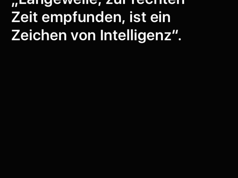 Frage: „Du bist langweilig“ Antwort: „Na ja, Stefan, ein weiser Mann sagte mal „Langeweile, zur rechten Zeit empfunden, ist ein Zeichen von Intelligenz“.“