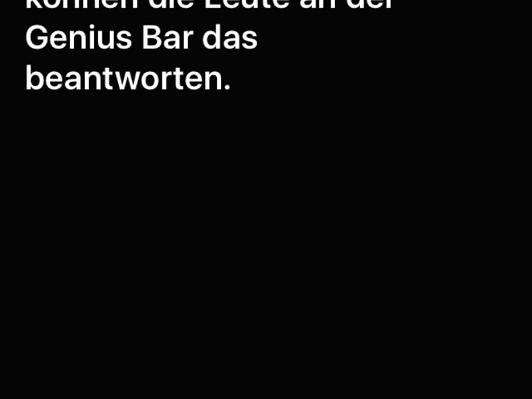 Frage: „Warum bin ich auf der Welt?“ Antwort: „Ich weiß es nicht. Vielleicht können die Leute an der Genius Bar das beantworten.“
