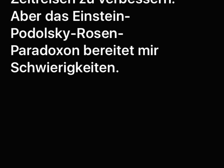 Frage: „Was machst du heute Abend?“ Antwort: „Ich versuche mich im Zeitreisen zu verbessern. Aber das Einstein-Podolsky-Rosen-Paradoxon bereitet mir Schwierigkeiten.“