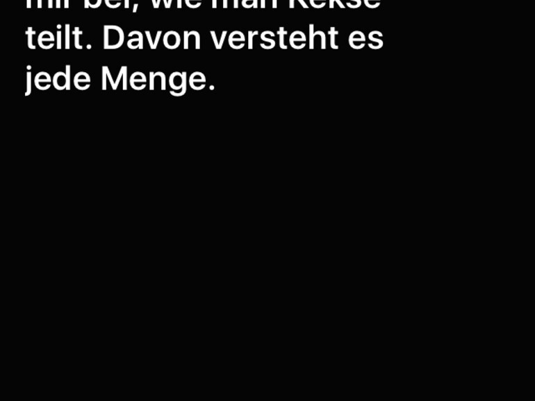 Frage: „Was ist 0 geteilt durch 0?“ Antwort: „Stell dir vor, du hast 0 Kekse und verteilst sie gleichmäßig auf 0 Freunde. Wie viele Kekse bekommt jeder? Siehst du? Das macht keinen Sinn! Und das Krümelmonster ist traurig, weil es keine Kekse mehr gibt und du bist traurig, weil du keine Freunde hast... “