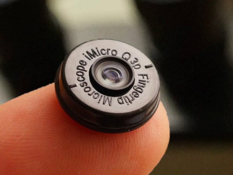 Die Aufsatzlinse iMicro Q3p mit einem Gewicht von nur 0,42 Gramm und einer Dicke von nur 1,3 Zentimetern lässt sich mit einem wiederverwendbaren Saugnapf an praktisch jeder Smartphone-Kamera anbringen. Ihr Design bietet eine Vergrößerungsleistung von bis zu 1.200x mit einem Auflösungsvermögen von weniger als einem Mikrometer. Das Gerät wird über Kickstarter finanziert.