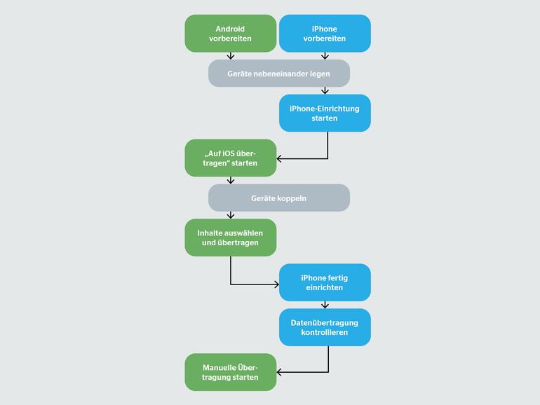 Apples „Auf iOS übertragen“-Anwendung bringt wichtige Daten vom Android-Gerät zum iPhone. (Bild: Screenshot)