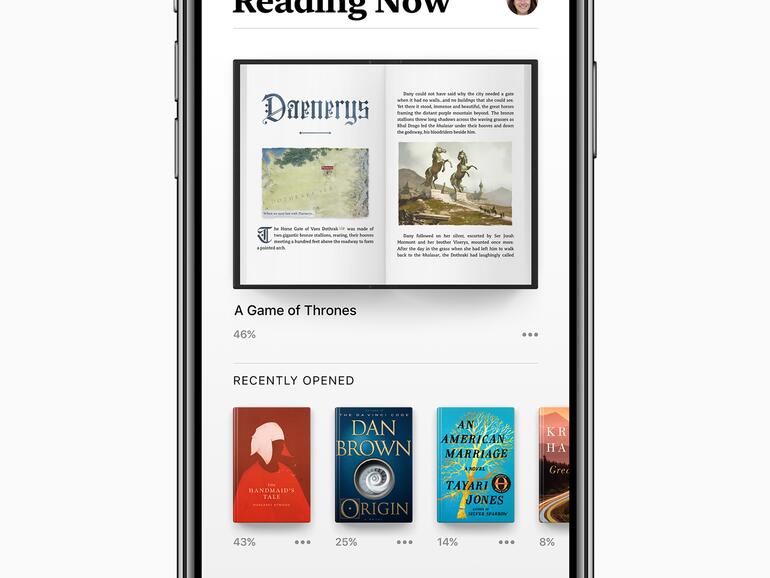 In Apple Book können Leser über den neuen 'Jetzt lesen' Tab schnell auf ihre Bücher zugreifen oder den 'Bibliothek'-Tab besuchen, um ihre vollständige Sammlung zu sehen. Über die neue 'Jetzt lesen' werden die Bücher erreicht, die man gerade liest oder anhört. Mit 'Leseliste' kann man eine Wunschliste mit Büchern verwalten, die man aber noch nicht besitzt. ‚'Vervollständige die Reihe' oder 'Für dich' zeigen Bücher auf Basis derer, die man kürzlich gelesen hat. Das klappt genau so wie bei Apple Music.