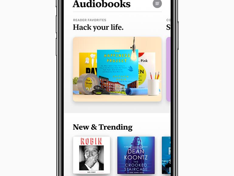 Ein neuer 'Hörbücher' Tab macht es dem Nutzer leicht, den Lieblingshörstoff zu Hause oder unterwegs zu nutzen. Apple Books hat auch eine Anbindung an CarPlay im Auto, um Hörbücher dort nahtlos Weiterhören zu können.