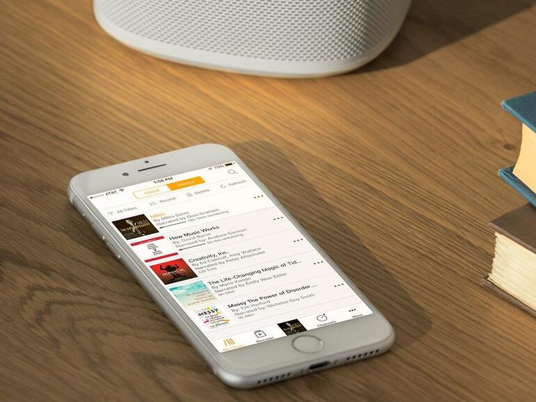 „Hören auf Sonos – Sie können Ihre Titel zu Hause über Ihr Sonos-System abspielen, direkt aus der Audible-App heraus.“