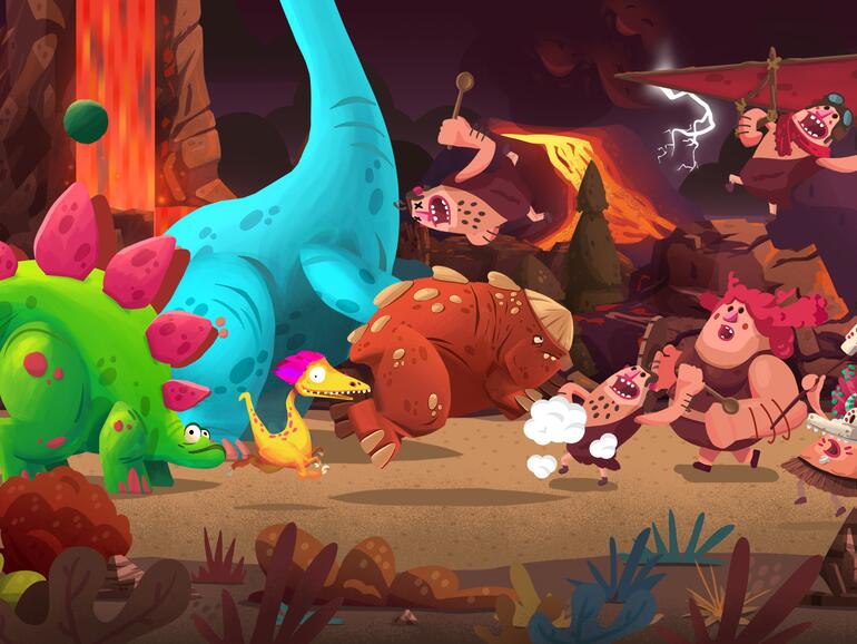 Obwohl wir zu dieser Zeit alle noch andere Jobs hatten, kamen wir schnell voran. Wichtig war uns, nicht stur an unserer Anfangsidee festzuhalten. Den Prototyp zeigten wir vielen Freunden und ließen deren Feedback einfließen. Nach ein paar Monaten hatte Martin jedoch kaum noch Zeit für Dino Bash. Beinahe stolperten wir in die typische Indie-Falle: Wir hatten den Aufwand unterschätzt und uns nicht gemeinsam auf einen Zeitrahmen festgelegt. Zum Glück konnten wir Anfang 2014 Benjamin Sauder als Coder für die Zusammenarbeit an Dino Bash gewinnen. Zu diesem Zeitpunkt wurde uns klar, dass wir die hohen Erwartungen, die wir an Dino Bash hatten, kaum als Freizeitprojekt realisieren konnten. Daher beworben wir uns beim Medienboard Berlin Brandenburg um eine Förderung, welche wir glücklicherweise auch bekamen. Als kleines Indie-Studio sollte man auf jeden Fall alle Mittel und Wege nutzen, um an zusätzliches Budget zu kommen. Neben Crowdfunding und Preisgeldern sind die vielen Förderungen, die es in Deutschland gibt, wirklich hilfreich.