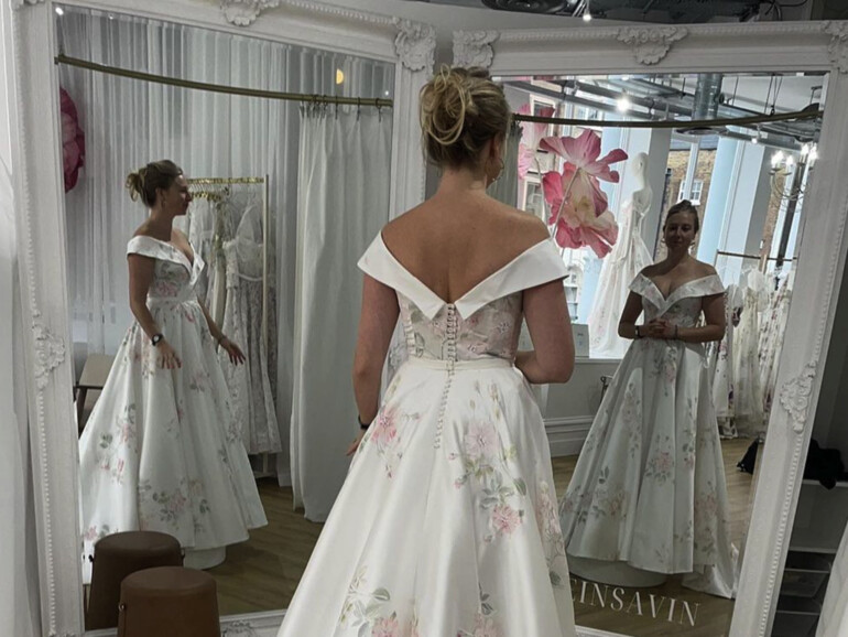 Ist es ein Fehler in der Matrix, computergestützte Fotografie oder ein Fake? Ein Bild, das in einem Brautmodengschäft aufgenommen wurde, zeigt eine Frau, die zwischen zwei Spiegeln steht und mehrere Posen auf einmal einnimmt.