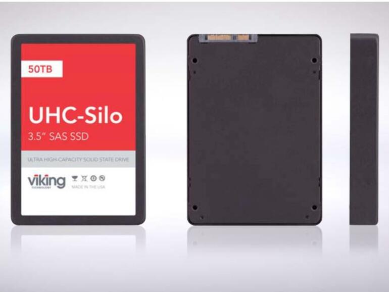 Die Viking UHC-Silo ist eine SSD die in einem handelsüblichen 3,5-Zoll-Gehäuse untergebracht ist. Damit ist sie zwar viel größer als die sonst gebräuchlichen 2,5-Zoll-Modelle aber Festplatten gibt es bekanntlich auch im 3,5-Zoll-Format. Die SAS-SSD fasst in der Variante VNF33122T934CCMHB 25 TByte Daten. Wem das noch nicht reicht, kann die VNF33145T834CCMHB mit einer Kapazität von 50 TByte erwerben.