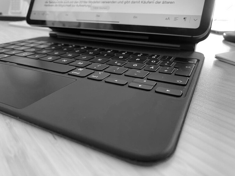 Mit dem Magic Keyboard für das iPad Pro erfüllt Apple vielen Nutzern den Wunsch nach einer stabilen Tastatur mit Scherenmechanismus, Hintergrundbeleuchtung und anpassbarem Bildwinkel. Sogar an einen Passthrough-Stromanschluss hat Apple dabei gedacht und erhielt in den Tests viel Lob für die Umsetzung.