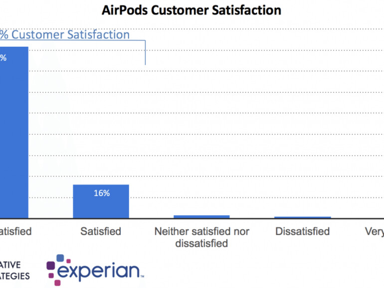 Nur selten gab es Produkte bei denen 98 Prozent der Kunden schon in der ersten Generation so zufrieden waren, wie mit den AirPods. Laut Creative Strategies waren beim ersten iPhone vor zehn Jahren nur etwa 92 Prozent der Kunden völlig zufrieden. Genauso viele waren es auch beim ersten iPad im Jahr 2010. Nur die Apple Watch konnte dies mit sattem 97 Prozent Kundenzufriedenheit im Jahr 2015 toppen. Da ist es wohl auch kein Wunder, wenn viele der AirPods-Nutzer Apples kleine Ohrstöpsel weiterempfehlen würden.