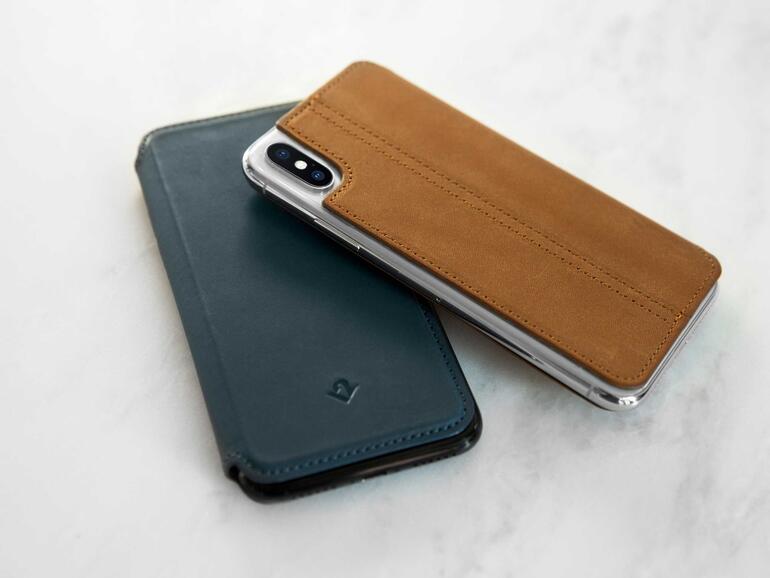 Das iPhone X SurfacePad schützt nicht nur das teure Smartphone und seine Glasoberflächen sondern verfügt außerdem über zwei Kreditkartenfächer, fungiert als Ständer für Videos und FaceTime-Anrufe und besteht aus Vollnarbenleder. Die Hülle für rund 50 US-Dollar ist in drei Farben erhältlich: Schwarz, Cognac und Dunkelblau.