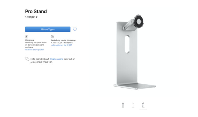 Während das Pro Display XDR bereits kein Schnäppchen darstellt, wird es auch noch ohne Standfuß ausgeliefert. Den Pro Stand lässt sich Apple nämlich extra bezahlen – und zwar nicht zu knapp. Während andere hochwertige Displays um die 1.000 Euro kosten, möchte Apple nur für den Standfuß 1.100 Euro.