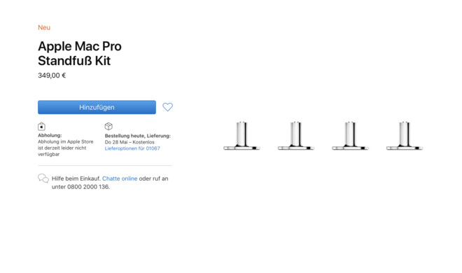 Der Mac Pro ist ein Ausnahmeprodukt für Apple und richtet sich ausschließlich an professionelle Anwender. Allerdings müssen diese stets tief in die Tasche greifen. Neben den optionalen Rollen kann man den Mac auch auf vier Standfüße aus Edelstahl stellen. Diese schlagen allerdings im Kit mit 350 Euro zu Buche.