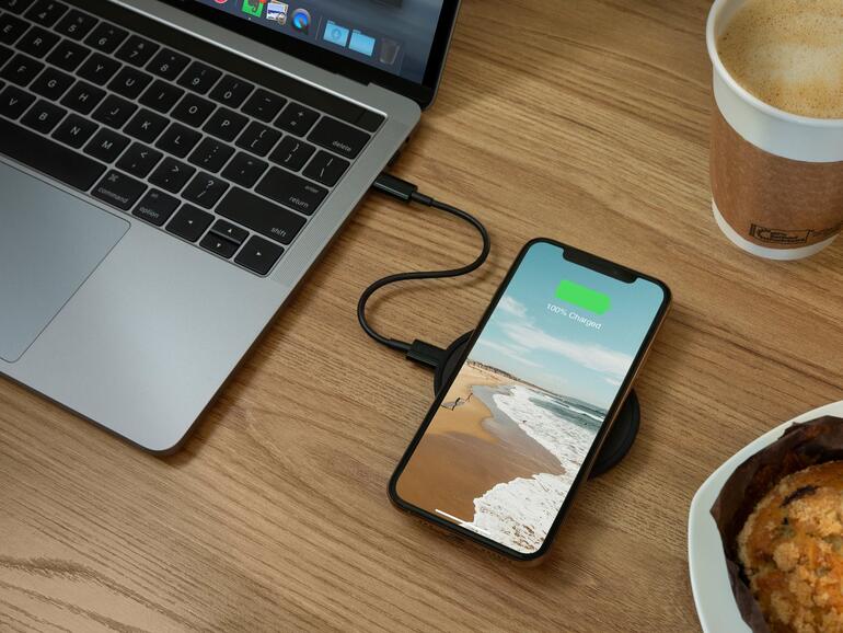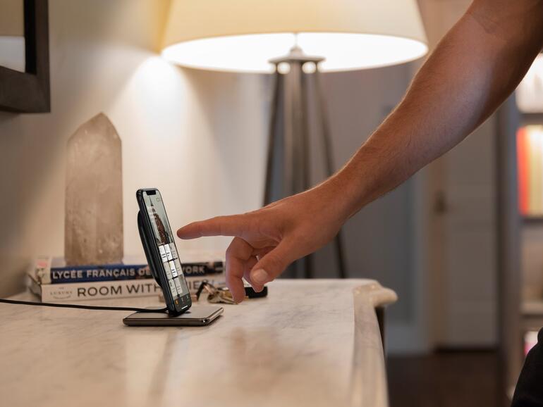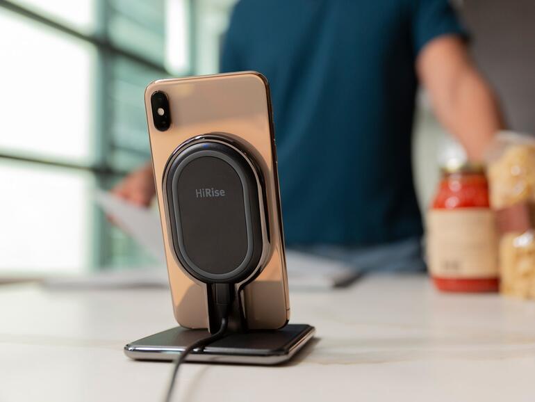 Der vertikale Standfuß verfügt nämlich an der Rückseite über ein Ladepad. Dieses lässt sich mit einem Handgriff entfernen, sodass die Ladematte auch ohne den restlichen Fuß genutzt werden kann und macht das Ladegerät damit auch reisetauglich. Mit einer maximalen Ladeleistung von 10 Watt unterstützt HiRise Wireless lassen sich aktuelle iPhone-Modelle mit maximaler Geschwindigkeit laden.