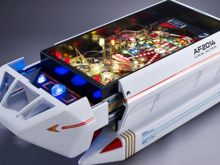 Denn als Basis des mit der Markierung „AF2014 U.S.S Altar“ versehenen Couchtisches dient der 1991 von Data East gebaute Flipper mit Star-Trek-Thematik. Unabhängig von dieser Typen-Bezeichnung wurde das Möbel offiziell auf den Namen „The Shuttle Interactive Coffee Table“ getauft, da es doch etwas mehr Interaktion als die Füße hochzulegen, Bier und Nüsschen abzustellen bietet. Das folgende Archiv-Video zeigt den ursprünglichen Flipper in Aktion.