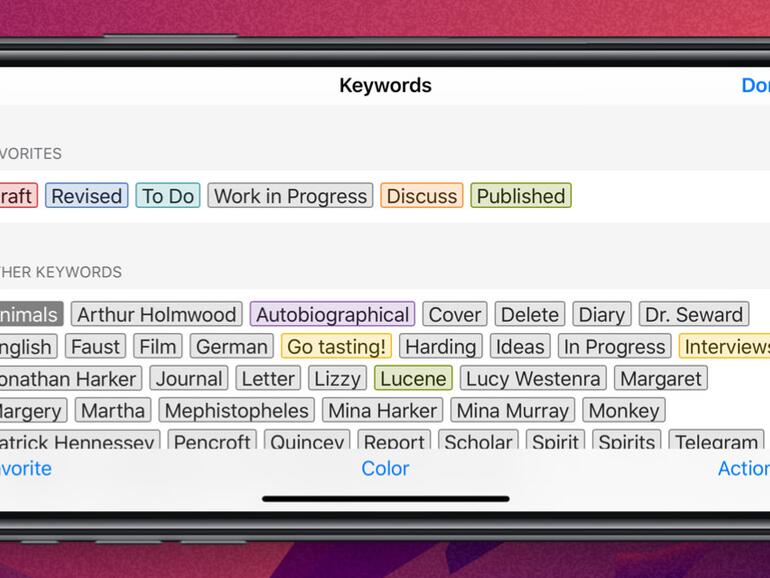 Seit heute stellen die Entwickler Ulysses 17 für alle Abonnenten kostenfrei bereit. Das Update führt auf dem iPhone und iPad endlich die Möglichkeit ein, dass Sie auch auf den Mobilgeräten Ihre Schlagwörter verwalten können. Das Feature ist schon seit dem Frühjahr auf dem Mac verfügbar und macht Ihre Aufzeichnen schneller auffindbar.