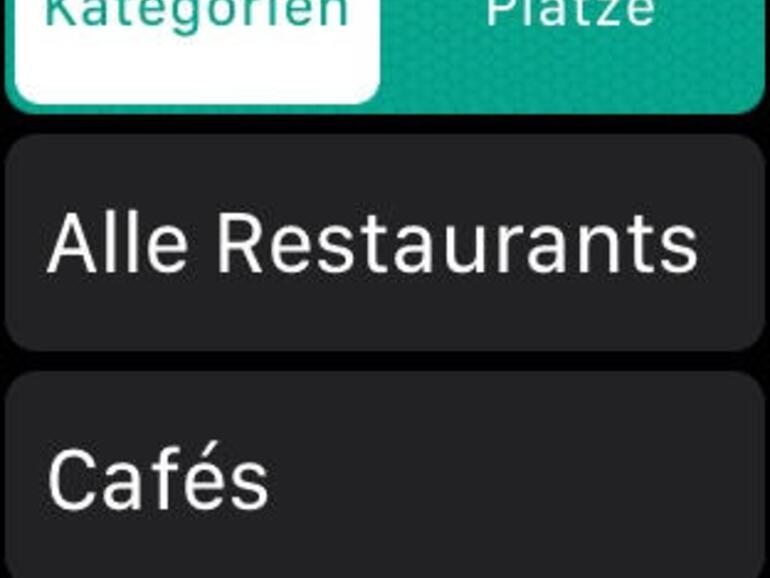 Unterwegs sind ortsbasierte Dienste einfach Gold wert. Wenn man fern der gewohnten Heimat auf der Straße steht und ein Café sucht oder dringend eine Apotheke benötigt, ist das Smartphone mit seinem GPS-Empfänger ein echter Segen. Der Markt mit diesen Informationen ist umkämpft, doch neben den großen Anbietern wie Apple und Google halten sich auch einige kleinere tapfer. Und einer davon ist die App AroundMe, die schon in der Frühzeit der GPS-Empfänger im iPhone wichtige Orte in der Umgebung auf der Karte präsentierte. Im Vergleich mag AroundMe zwar mittlerweile etwas altbacken wirken, und es fehlt auch die Community mit ihren Bewertungen, die manche andere App zu bieten hat. Dafür hat AroundMe aber der Konkurrenz einige andere Qualitäten voraus und zeigt beispielsweise das Kinoprogramm oder das Wetter. Diese Spezialitäten bleiben der Watch-App zwar verwehrt, doch die wichtigsten Kategorien finden sich auch auf der Uhr. Wem die kleine Kartendarstellung nicht reicht, der kann mit einem Tipp auch eine Routenplanung von der Karten-App anfordern.