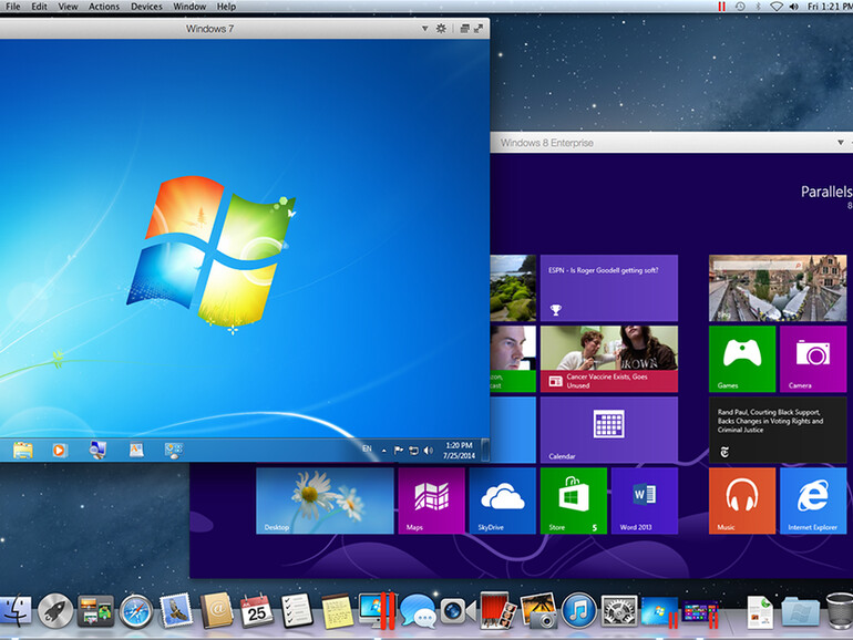 Parallels stellt jedes Betriebssystem in einem neuen Fenster dar. Lediglich das originale OS-X-Betriebssystem, das auf dem iMac oder MacBook installiert ist, wird wie gewohnt bedient. Außerdem erlaubt die Software Parallels Desktop 10 die Kommunikation der Betriebssysteme untereinander. Zwar kann das simulierte Windows zum Beispiel kein Dateiformat ausführen oder öffnen, das nur auf dem Mac läuft. Allerdings können Nutzer Text, Bilder, Videos und viele andere Inhalte einfach in das andere Betriebssystem kopieren.