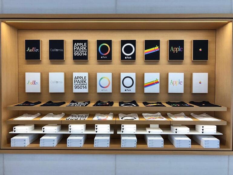 Neben den traditionellen Apple-Produkten bietet das Besucherzentrum im Apple Park einige spezielle Produkte an, die Sie weder im Online-Store noch in anderen Apple Stores erhalten können. Dabei handelt es sich jedoch weniger um neue Geräte als um Merchandise-Produkte. Diese reichen von T-Shirts, Mützen über Pullover bis hin zu einfachen Beuteln. Ab sofort gibt es mehrere neue T-Shirts, die Apple an alte Zeiten angelehnt hat und die bei hartgesottenen Fans ein Gefühl der Nostalgie hervorrufen dürften. Gleich acht neue Design bietet Apple an. Zusätzlich haben Sie dabei die Auswahl zwischen einer weißen und einer schwarzen Version.
