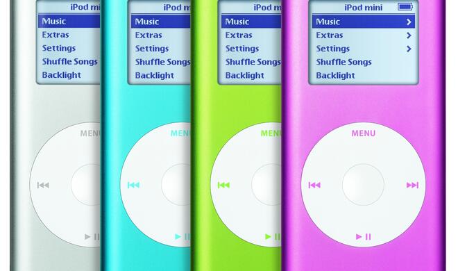 Der iPod Mini hatte die kürzeste Lebenszeit der verschiedenen iPod-Varianten und wurde 2004 vorgestellt. Er war, wie der Name schon verrät, deutlich kleiner als der normale iPod, verfügbar in fünf verschiedenen Farben und nur mit 4 GB (bzw. 6 GB in der 2. Generation) erhältlich. Bereits nach der zweiten Generation wurde er 2005 durch den iPod nano ersetzt.