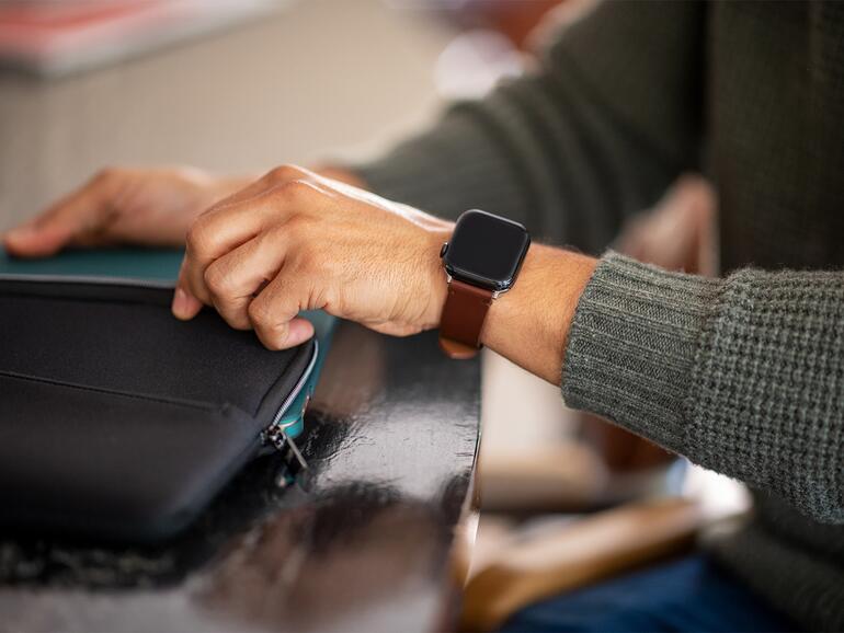 Den Unterschied zu anderen Armbändern machen bei den Artwizz-Modellen die Feinheiten. Die erwähnten kombinierten Lederarten sind eine, ein kleiner Clou bei den Adaptern eine zweite. Ein sogenannter Easy-Click-Federsteg ermöglicht es Ihnen, den Adapter vom Leder zu trennen und sogar zu tauschen, sollten Sie das Band mit einer anderen Smartwatch oder in einer anderen Farbe tragen wollen. Die Adapter sind in Gold, Silber und Space Grau einzeln erhältlich und können somit dem Gehäuse der Smartwatch farblich angepasst werden. Schön anzusehen ist auch das dezente, eingravierte Artwizz-Bildzeichen am Verschluss sowie das geprägte Logo auf der Armbandinnenseite.