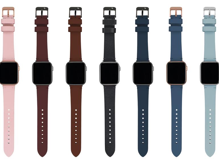Artwizz liefert das WatchBand Leather mit zwei Adaptern aus, die Sie gewohnt schnell einfügen und an der Smartwatch befestigen können. Und auch was die Größen angeht, dürfte für jeden Geschmack etwas dabei sein. Für Handgelenke mit einem Umfang von 140 Millimeter passen die verschiedenen Modelle ebenso wie für solche mit einem Umfang von 205 Millimeter. Was die Modelle angeht, sind Sie ebenso auf der sicheren Seite, denn ob Sie noch die erste Apple Watch oder schon die neueste zu Hause haben: Das WatchBand Leather gibt es für alle fünf Varianten. Und wo wir schon bei Flexibilität sind: Bei den Farben hat Artwizz sieben verschiedene im Angebot, die etwas gedeckter sind als die eher jugendlichen Varianten, die Sie in den meisten (Online-)Shops vorfinden. Namentlich sind dies Rosé, Brown Rosé, Brown, Black, Navy, Nordic Blue und Light Blue (von links nach rechts).