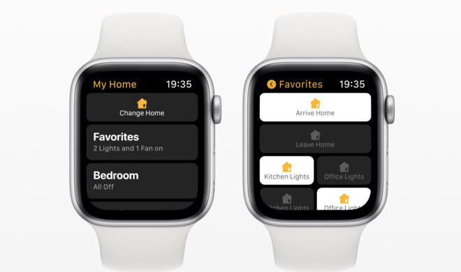 Auf der Apple Watch gestaltet sich die Steuerung Ihrer Smart-Home-Geräte als schwierig, da Sie von hier aus nur auf Ihre Favoriten Zugriff haben. Nur via Siri lassen sich auch andere Geräte steuern. Besser wäre es natürlich, wenn man auch in der Home-App der Watch alle Geräte und Räume bedienen könnte.