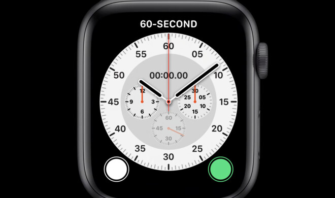 Mit dem Chronograph Pro will Apple an klassische Uhrendesigns erinnern. Neben Zeitskalen von 60, 30, 6 oder Sekunden kannst du auch eine Tachymeter-Skala verwenden, um deine Geschwindigkeit zu messen.