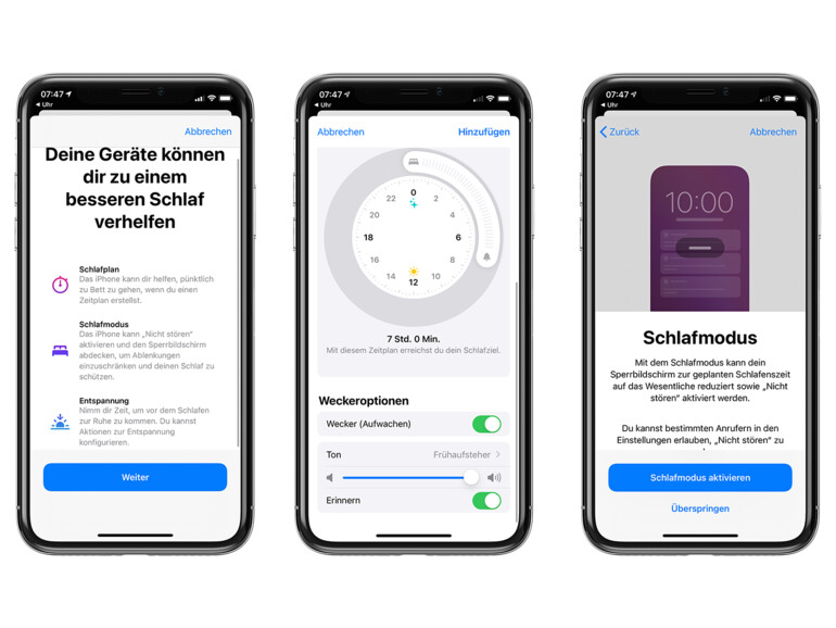 Zunächst einmal ist die neue Funktion „Schlaf“ eine Erweiterung der Schlafenszeit, die Apple völlig überarbeitet hat. Eine neue App ist daher nicht notwendig. Das Feature nutzt die Wecker- sowie die Health-App. Man möchte sicherstellen, dass du ausreichend Schlaf erhältst.