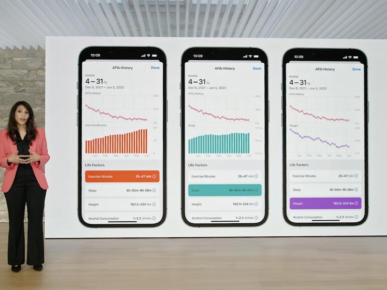 Eröffnet wurde die Vorstellung von watchOS 9 mit der Trainings-App. Diese wurde um weitere Laufmeter-Messwerte wie die Schrittlänge erweitert. Dazu nutzt die App die bestehenden Sensordaten ergänzt um eine Prise Machine Learning. SportlerInnen können sich nun ein maßgeschneidertes Workout zusammenstellen, welches aus mehreren Sportarten bestehen kann. Bestimmte Zielwerte überwacht die Uhr und warnt via Haptik und Sprachausgabe.