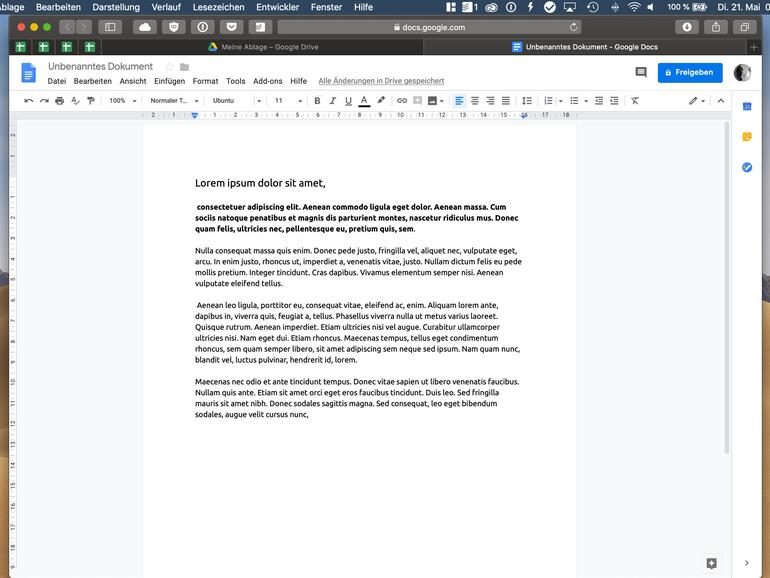 Woran es Googles Office-Paket mangelt, sind native Anwendungen für den Mac. Dort läuft, anders als auf Smartphones und Tablets, alles im Browser ab.