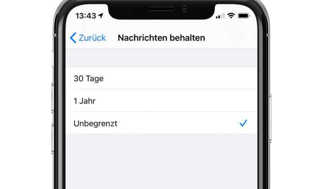 Wenn du viel in Gruppen und Chats in WhatsApp unterwegs bist, dann wirst du in „Einstellungen > Allgemein > iPhone-Speicher“ schnell feststellen, dass die Anwendungen vermutlich zu den größten Speicherfressern gehört, da stets alle Nachrichten und Bilder sowie Videos gesichert werden. Apple hat daher in iMessage vor einiger Zeit eine clevere Funktion integriert, die je nach Auswahl den Nachrichtenverlauf nach 30 Tagen, einem Jahr oder nie löscht und damit Speicher spart.