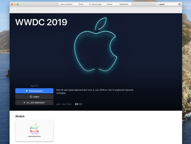 Neu: WWDC 2020 auch mit Apples TV-App ansehen
