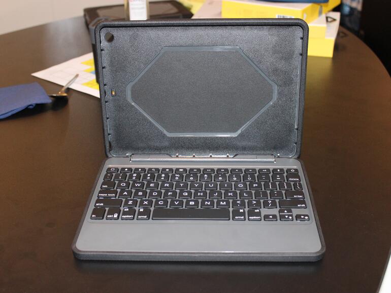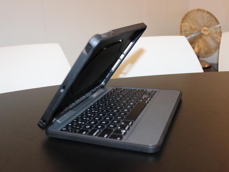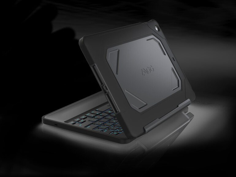 Die hintergrundbeleuchteten Island-Style-Tasten sorgen bei schlechten Lichtverhältnissen dafür, dass der Nutzer auch wirklich die richtigen Knöpfe trifft. MacBook Pro-Anwender müssen sich hier also nicht umgewöhnen, sondern können den Komfort einer hintergrundbeleuchteten Tastatur auch auf der Rugged Folio nutzen. Dank des patentierten Magnetscharniers lässt sich der Blickwinkel bequem auf bis zu 135 Grad einstellen. Das mobile Bluetooth-Keyboard ist batteriebetrieben und läuft dank des besonderen Akkus bis zu drei Monate. Ein stolzer Wert.