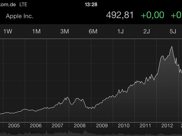 "Apple-Aktie 2013 immer noch im Minus" im Minus? Ok, wer seine Aktie für 700 Dollar gekauft hat, der ist jetzt im Minus. Wer wie ich z.B letzte Wochen Apple Aktien gekauft hat, konnte seitdem ein nettes Plus verbuchen. Das reicht nicht für einen Porsche Cayenne, aber ist immer noch mehr als ich für die gleiche Summe auf dem Festgeldkonto bekommen hätte.