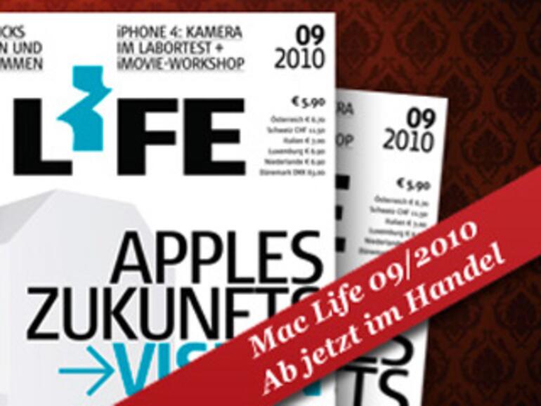 Die Mac-Life-Ausgabe 09/2010 ist ab Mittwoch, dem 4. August, im Zeitschriftenhandel und unter www.falkemedia-shop.de erhältlich. Ab sofort können Sie zudem hier das gesamte Magazin als PDF zum Preis von 3,99 Euro erwerben. Alle Artikel stehen zudem auch einzeln in unserem PDF-Shop zur Verfügung. Die Heft-CD der Mac Life 09/2010 bietet unter anderen eine Vielzahl stilsicherer Icons, mit der Sie Ihren Desktop verschönern können.