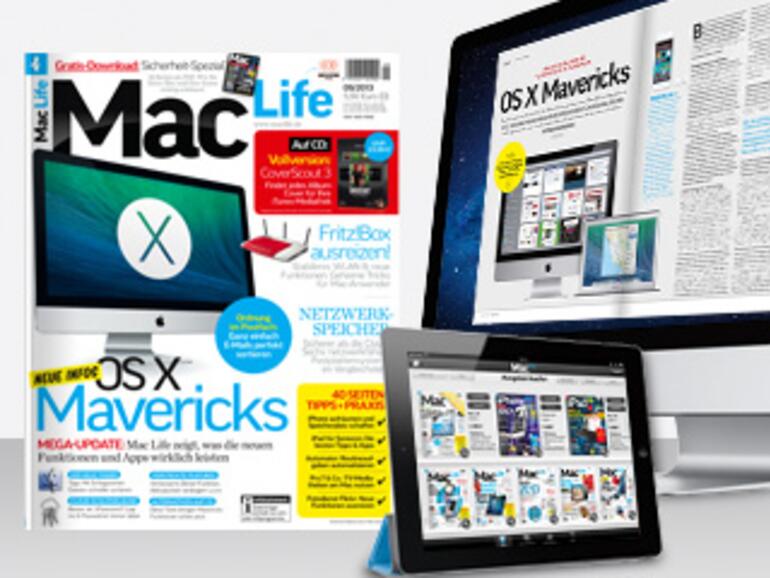 Die Mac-Life-Ausgabe 09/2013 finden Sie zum bequemen Download direkt in unserem PDF-Shop und natürlich auch in unserer Kiosk-App für iPhone, iPad und iPod touch (Link in den App-Store) zum Preis von jeweils nur 4,49 Euro. Gedruckt ist das Magazin für 5,90 Euro im Zeitschriftenhandel und im falkemedia-Shop erhältlich.
