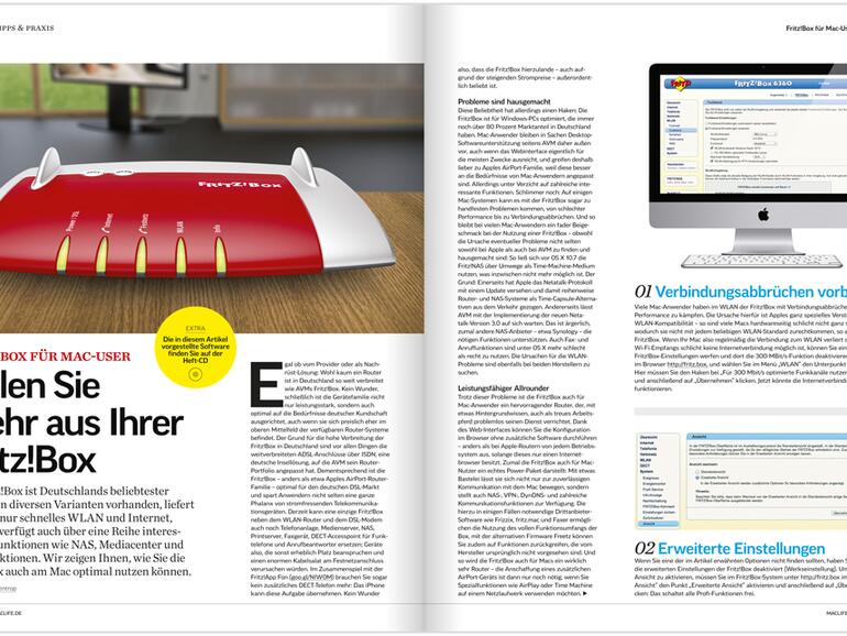 Die Fritz!Box ist Deutschlands beliebtester Router: In diversen Varianten vorhanden, liefert sie nicht nur schnelles WLAN und Internet, sondern verfügt auch über eine Reihe interessanter Funktionen wie NAS, Mediacenter und Fax-Funktionen. Wir zeigen Ihnen, wie Sie die Fritz!Box auch am Mac optimal nutzen können.