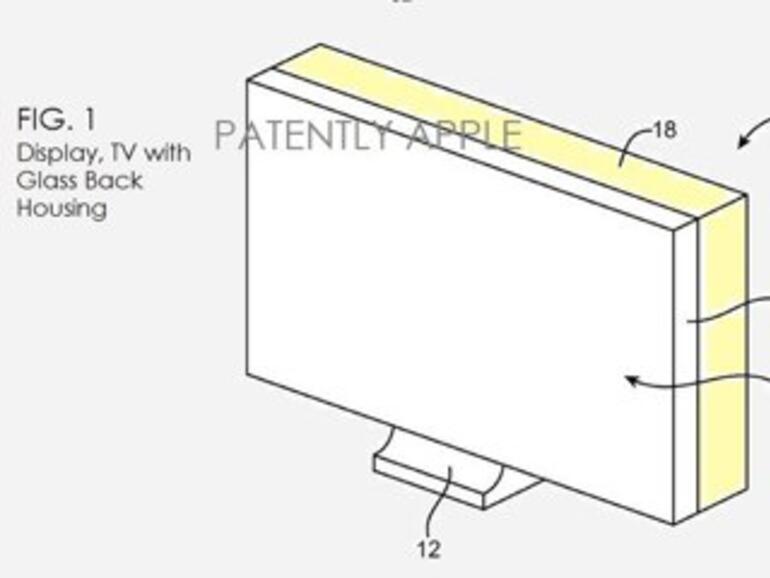 Im Einzelnen wird geschildert, wie ein Display innerhalb einer Gehäusestruktur aus Glas eingebettet werden kann, genauer gesagt, innerhalb einer Vertiefung des Glaskörpers oder durch eine gläserne Umrahmung. Dabei spricht Apple in einer Patentzeichnung explizit von einem Fernseher.
