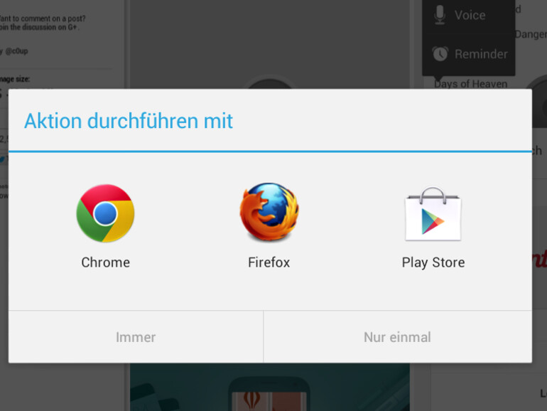Obwohl die Nutzung des Google-Ökosystems letztlich das Gerät finanziert - es gibt sogar einen 20 Euro Gutschein für den Play Store - ist Android 4.1 auf dem Nexus 7 offen gegenüber der Google-Konkurrenz. Wer Firefox bevorzugt, kann diesen als Standard-Browser verwenden, ebenso fragt das Betriebssystem bei anderen Aktionen nach, wenn mehrere installierte Apps dafür in Frage kommen. Wird die Installation von Apps aus fremden Quellen gestattet, ist zum Beispiel die Installation des Amazon App-Shop oder Mozillas Aurora-Browser möglich.