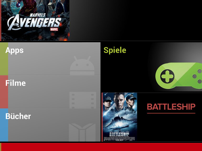 Google Play ist Googles Antwort auf den iTunes Store. Das Google noch nicht so lange im Geschäft mit Inhalten ist wie Apple, ist spürbar: Im deutschen Store gibt es nur Apps, Filme und Bücher. Mit thematischen Zusammenstellungen hält sich Google bei Apps und Filmen zurück - natürlich gibt es Kategorien, die aber bei hunderttausenden Apps überfüllt sind. Eine der aktuellen App-Empfehlungen ist ausgerechnet die von Spiegel Online, eine App, deren Oberfläche sehr an eine iOS-App erinnert. Sie wirkt dadurch wie ein Fremdkörper.