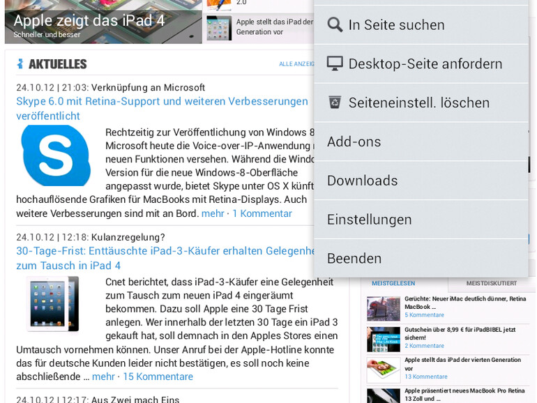 Darf man Äpfel mit Birnen vergleichen, wenn man der Apfel ist? Beim Vergleich mit dem Nexus 7 (von Phil Schiller nur "Android-Tablet" genannt) hat sich Apple nur das herausgepickt, was gerade passte. Bei kleineren Tablets soll es auf Größe ankommen, bei Smartphones hingegen nicht und schon gar nicht bei großen Tablets. Die Wiedergabe von Filmen, für die alle 16:9-Tablets letztlich gemacht sind, blieb unerwähnt - ebenso wie die Tatsache, dass das Nexus 7 mit seiner höheren Auflösung auf einem kleineren Display näher an "Retina" dran ist, als Apples iPad mini. Im Hochkantformat lässt die Webnutzung auf dem Nexus wenig Wünsche offen. Spiele haben ohnehin eine eigene Oberfläche.