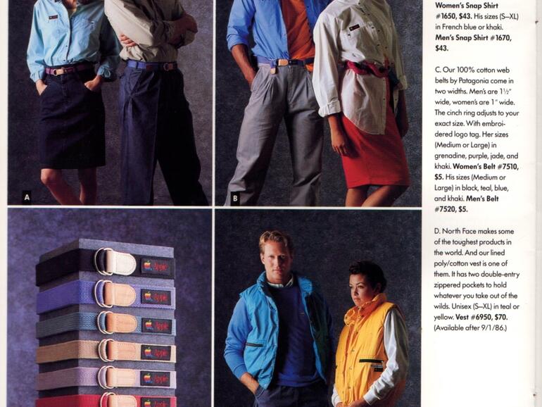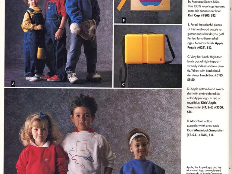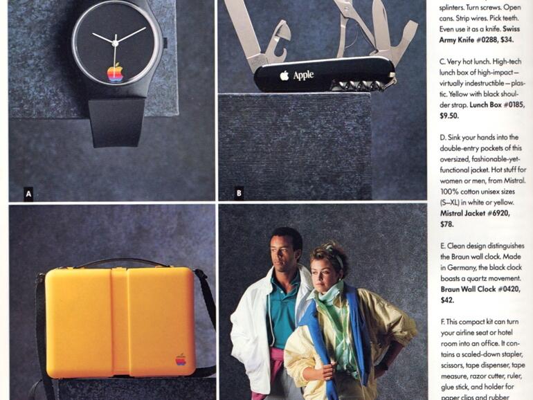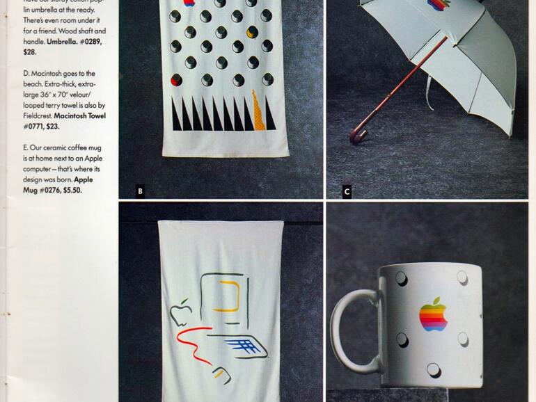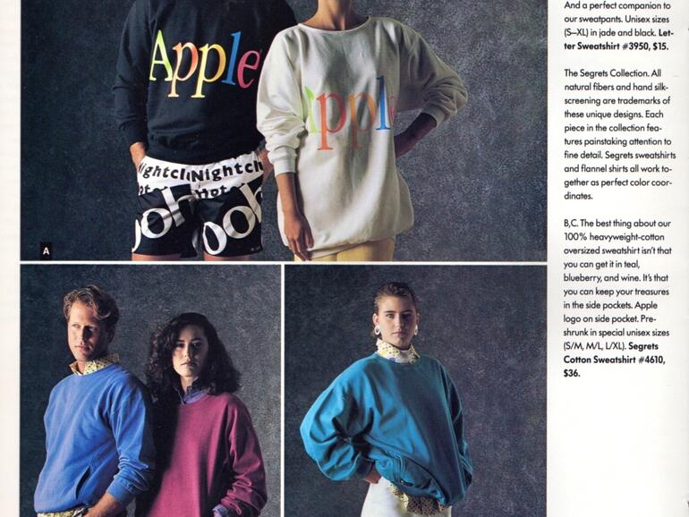 Wie die Kollegen von one more thing berichten, war Apple im Jahr 1986 bereits mit „The Apple Collection“ auf den Catwalks der Welt vertreten. Der komplette Katalog mit den Produkten, die nicht nur für Apple-Mitarbeiter bestimmt waren, findet sich auf Imgur. Auch Kuriositäten wie ein Surfbrett sind im Katalog vertreten.