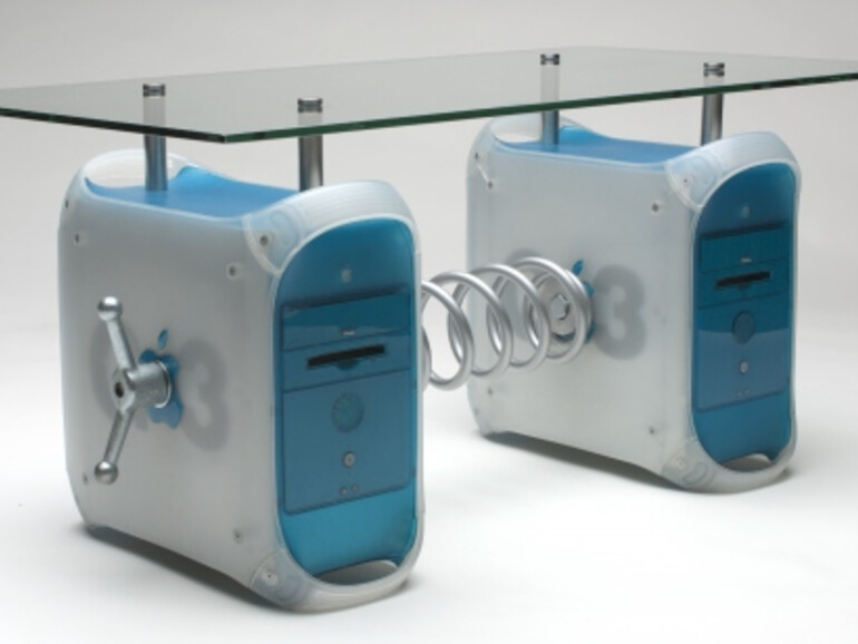 Netzfundstück für Apple-Fans, Retro-Liebhaber und Möbel-Individualisten: Unter dem Label Reform Designs baut Ryan Orr aus Davenport, Iowa, PowerMac-G4-Couchtische. Er recycelt alte Macs und führt sie einer neuen Bestimmung als Tischbein zu.