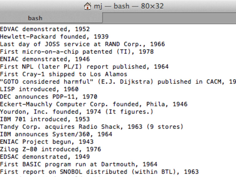 Einige Ostereier entstammen dem Unix-Erbe von OS X, beispielsweise die Computer-Psychologin Eliza, die Teil des Texteditors emacs ist: Terminal starten, "emacs" eingeben, danach "Esc" und "x" drücken, "doctor" eingeben und bestätigen. Mit der Psychologin wird ausschließlich auf Englisch gesprochen, jede Eingabe ist zweimal mit Return zu quittieren. Emacs hat sogar einige Spiele wie Tetris, Pong und Snake eingebaut.