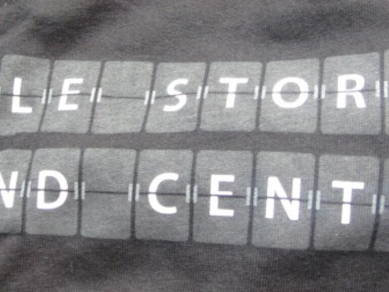 Für die ersten 4.000 Besucher gab es von Apple einmal mehr das obligatorische T-Shirt mit dem Namen des Store. Thematisch passend hat Apple jedoch T-Shirts im Stil der Bahnhofs-Informationstafel drucken lassen.