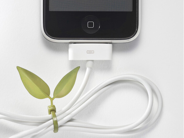 Wer es etwas traditioneller bevorzugt, bändigt die Kabel mit dem Leaf Tie. Dabei handelt es sich um einen gewöhnlichen Kabelbinder, allerdings mit zwei zwei Plastik-Blättern - da wird aus dem Kabelsalat dann tatsächlich ein Salat.