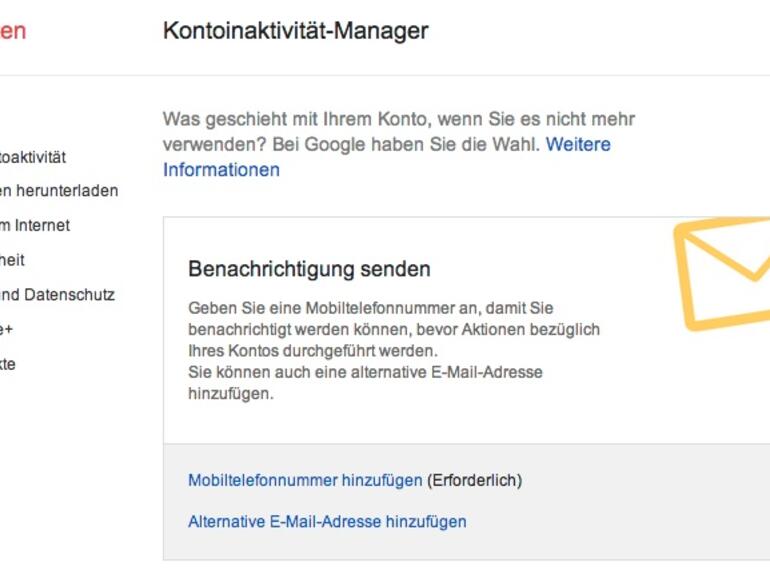 Unter https://www.google.com/settings/u/0/account/inactive kann jeder Google-Account-Nutzer nun sein Testament 2.0 hinterlassen. Diese „Nachlassregelung“ bezieht sich aber nur auf den Google-Account und allen verknüpften Daten, dient keinerlei anderen Zwecken.