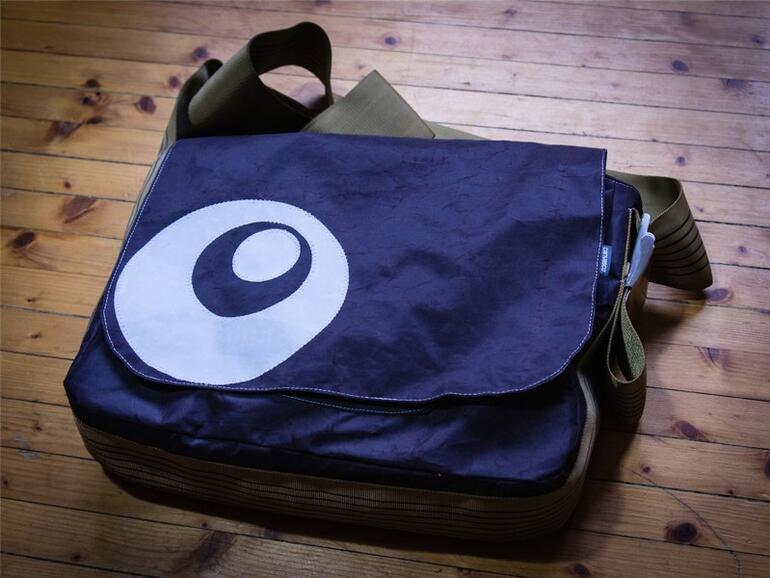 Vor dem Blick in die Tasche fällt der Blick natürlich auf die Tasche selbst. Mir leistet ein Urban Bag L von Canvasco treue Dienste: Die Tasche aus gebrauchtem Segelstoff ist handgefertigt „Made in Germany“, macht optisch einiges her, ist extrem belastbar und trotzdem sehr leicht. Der breite Tragegurt und die massiven Metallschnallen heben diese Tasche in Bezug auf die Optik vom üblichen Allerlei ab.